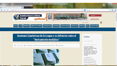 La SIP colocó en su portal la "respuesta" de la Comisión de Lexicografía de la Academia Ecuatoriana de la Lengua para utilizarla como argumento "científico" en contra de la Ley de Comunición.